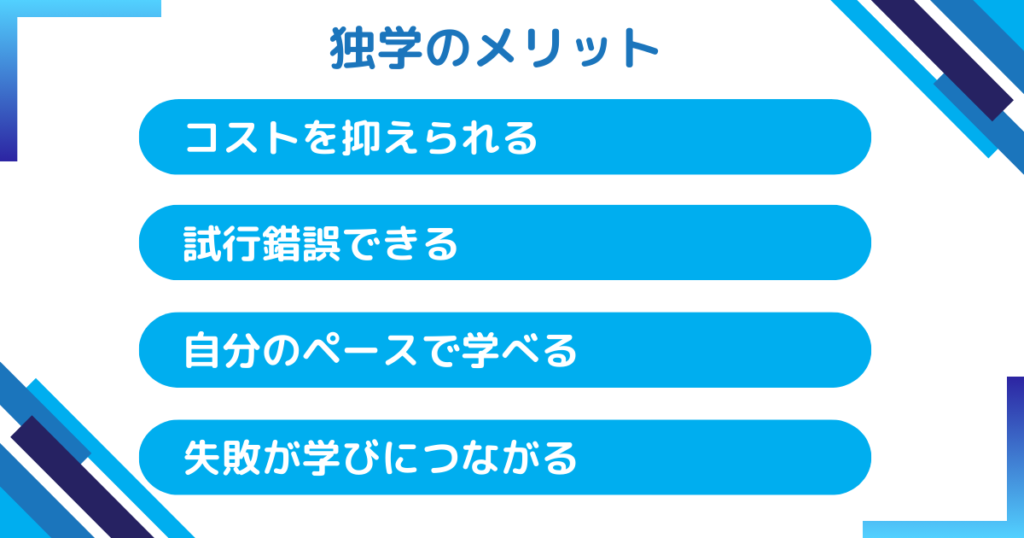自主性や課題解決能力が鍛えられることは、独学ならではの強みになります。