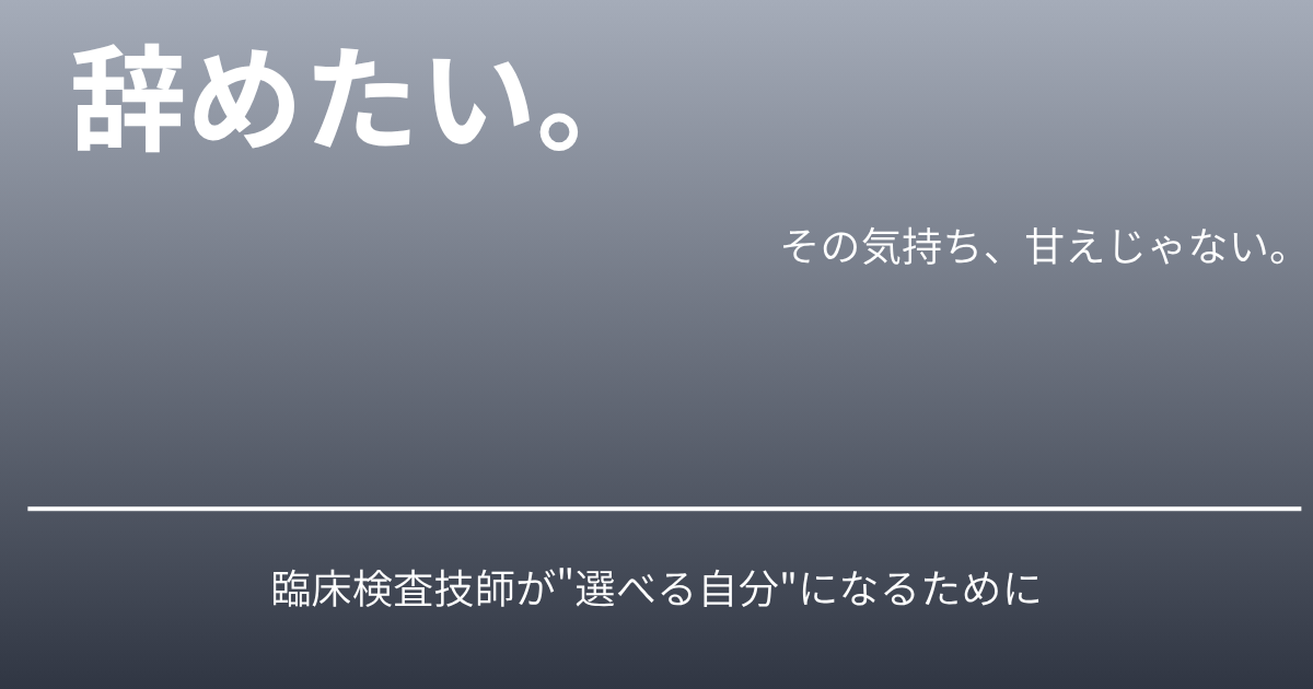 検査室で毎日顔を合わせる人間関係、上がらない給料、先が見えない将来。そんな中でこの言葉が頭をよぎったことがある人は、少なくないと思います。